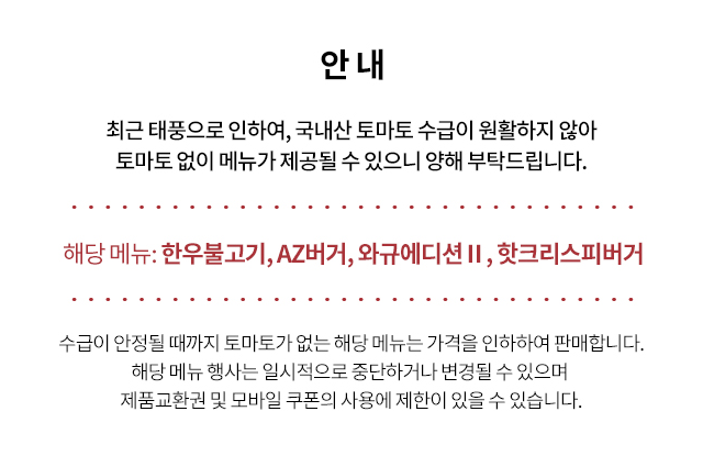 자사 앱을 통해서 토마토 제외 메뉴 선택 시
