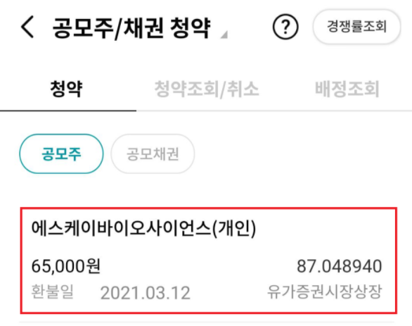 SK바이오 사이언스 (한국투자증권 앱에서 공모주 청약하는 방법)