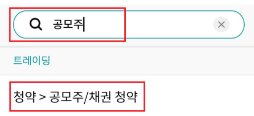 2. 돋보기를 눌러서 공모주를 검색하면, 바로 공모주/채권 청약을 보실 수 있습니다.