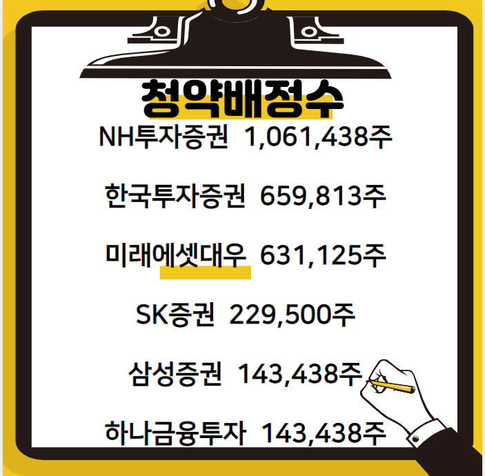 6. 고생 많으셨습니다. 참고로 증권사별 청약배정수를 안내드립니다.