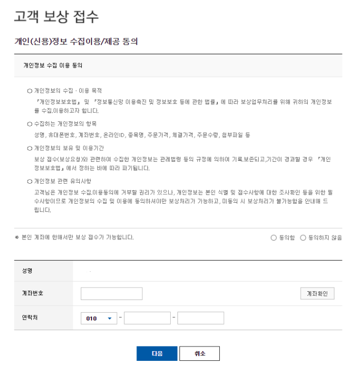 고객 보상 신청 접수 안내