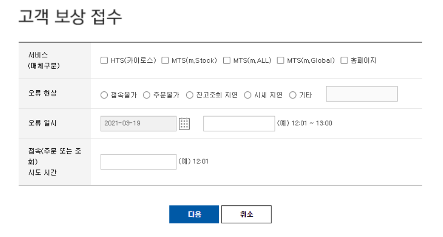 고객이 장애 확인 중 발생한 주가 변동은 보상을 하지 않습니다.