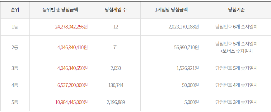 당첨번호 4개를 맞힌 4등(고정 당첨금 5만원)은