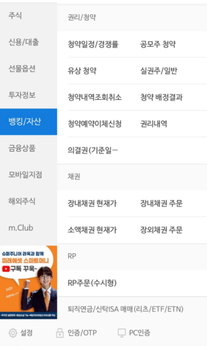 전체메뉴 → 뱅킹자산 → 공모주 청약을 클릭하시면