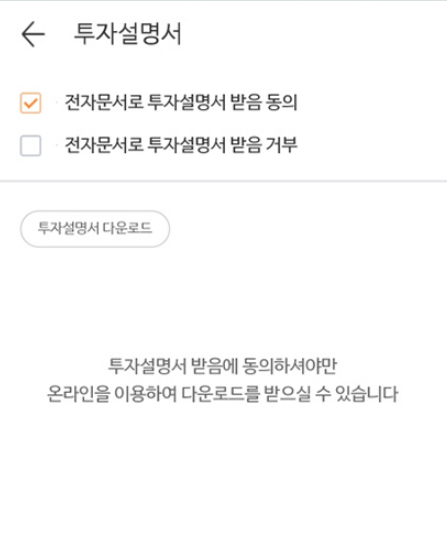 6. 전자문서로 투자설명서 받음 동의 또는 거부를 선택하고