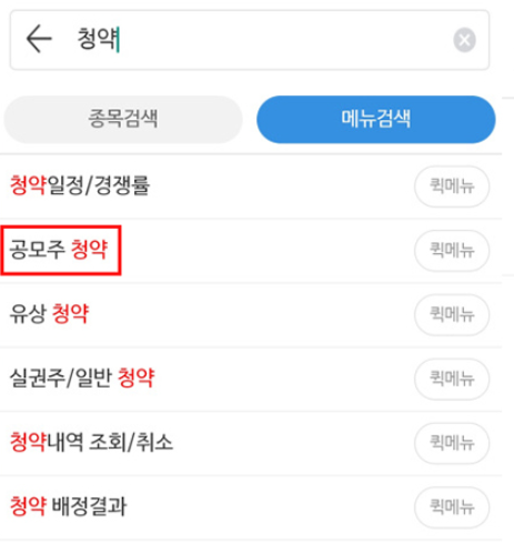 상단 돋보기로 청약 또는 공모주로 검색하시면 됩니다.