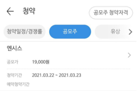 | 엔시스 공모주 청약 (🔺주관사 환불일 상장일) (0) | 2021.03.22 |