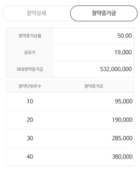 5. 공모 금액과 공모증거금을 선택하면 됩니다.