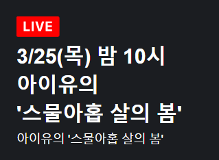 3/25(목) 밤 10시 아이유의 '스물아홉 살의 봄'