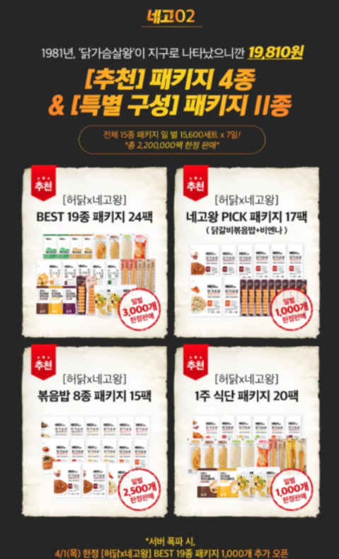세번째, 네고왕 패키지를 19,810원에 판매한다. 단, 하루 3,000개로 한정한다.