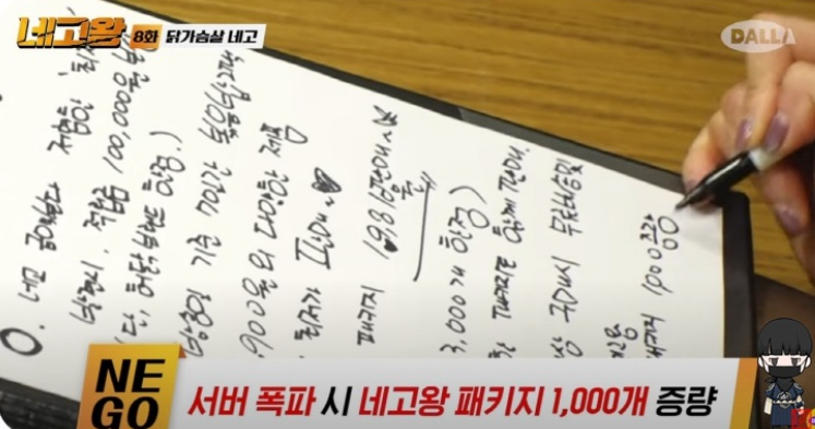 다섯번째, 서버 폭파 시 네고왕 패키지 1,000증량이 추가된다.