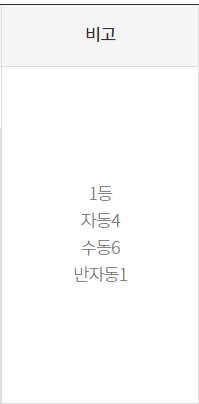 1등 당첨은 자동 4명, 수동 6명, 반자동 1명입니다.