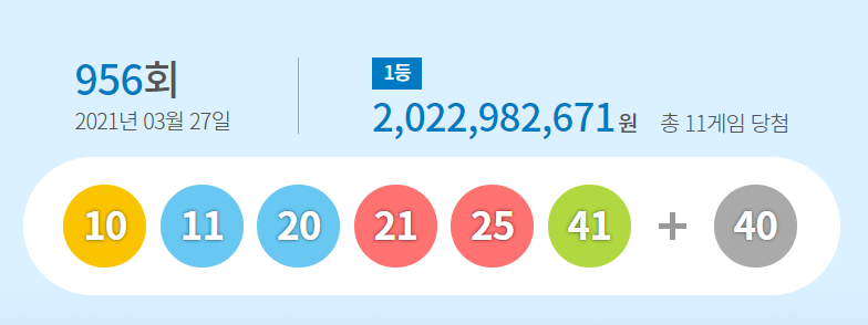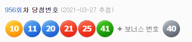 | 957회 로또당첨번호 🔺1등 21억 (+당첨지역) (0) | 2021.04.04 |