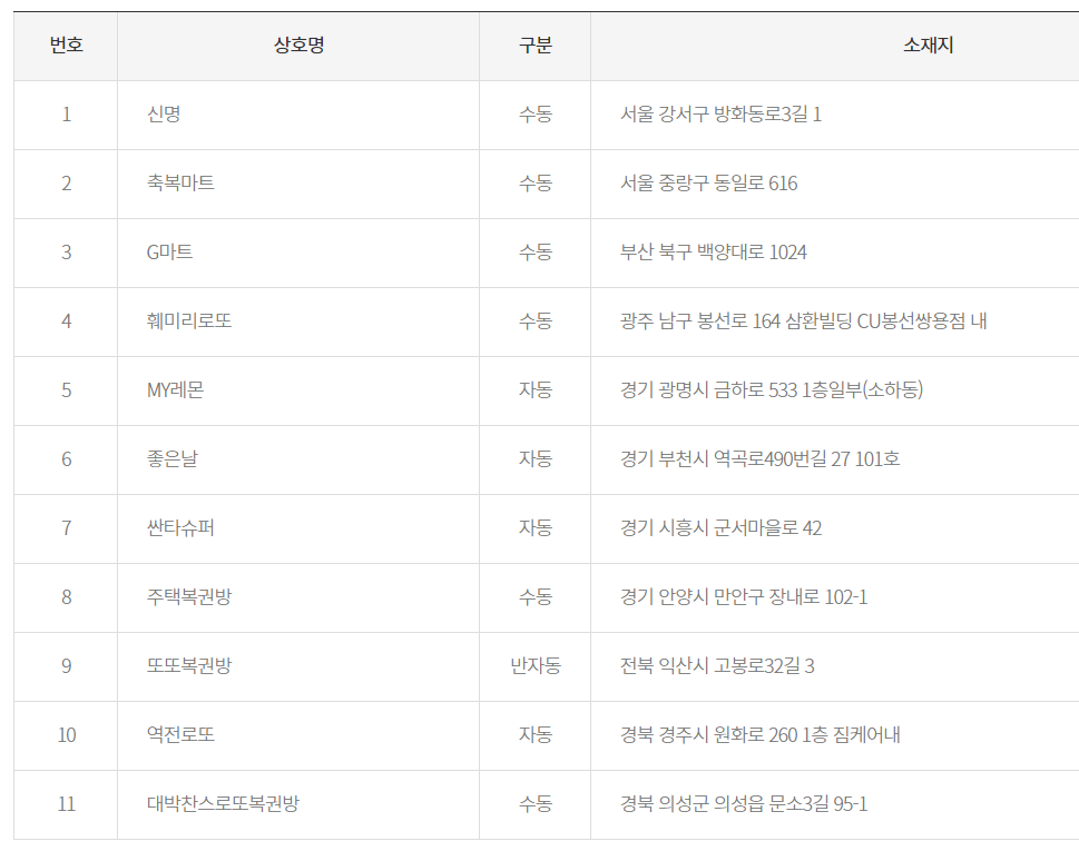1등, 2등 당첨지역 당첨판매점은 아래와 같습니다.