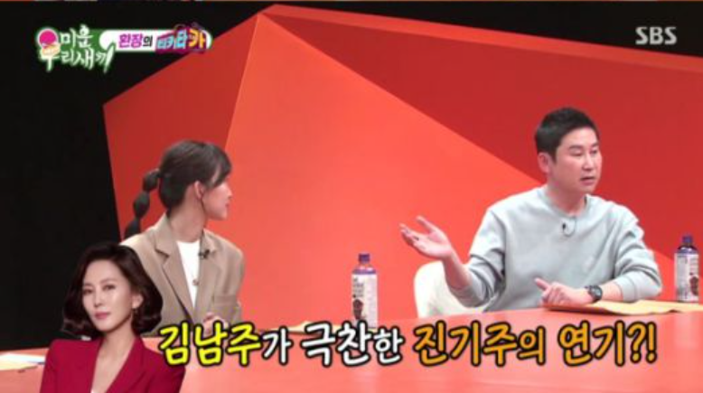 또한 진기주는 "배우로 처음 찍은 첫 신을 최지우 선배님과 찍었다"며 "너무 긴장해서 현장의 모든 목소리를 귀를 쫑긋하고 들으려할 때 최지우 선배님이 옆에서 '저건 이걸 하라는 말이야'라고 계속 알려주셨다고 촬영 에피소드를 털어 놓았습니다. 선배님이 친절하게 모든 상황을 알려주신 덕분에 실수 없이 잘 넘어갈수 있었다"고 밝혔습니다. 여기에 신동엽은 배우 김남주가 드라마 '미스티' 촬영할 때 진기주의 '아나운서' 연기를 극찬한 에피소드까지 덧붙여 시선을 집중시켰습니다.