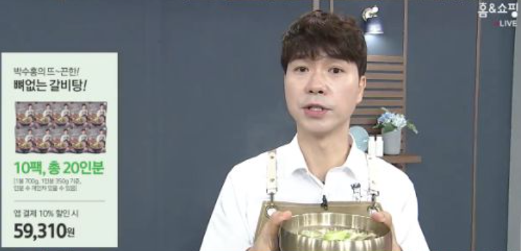 박수홍은 오늘 6일 '홈&쇼핑' 생방송에 등장해 '뼈 없는 갈비탕'을 판매했으며, 방송시간 25분을 남기고 1만 개 이상의 물량이 매진됐습니다. 이어 생방송 25분을 남겨두고 매진 소식이 전해지자 "힘 받아간다. 열심히 살겠다"라고 이야기했습니다.