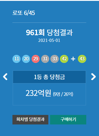 961번 당첨번호