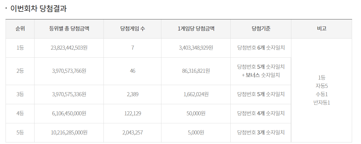 당첨번호 4개를 맞힌 4등(고정 당첨금 5만원)은