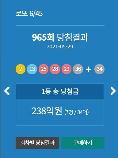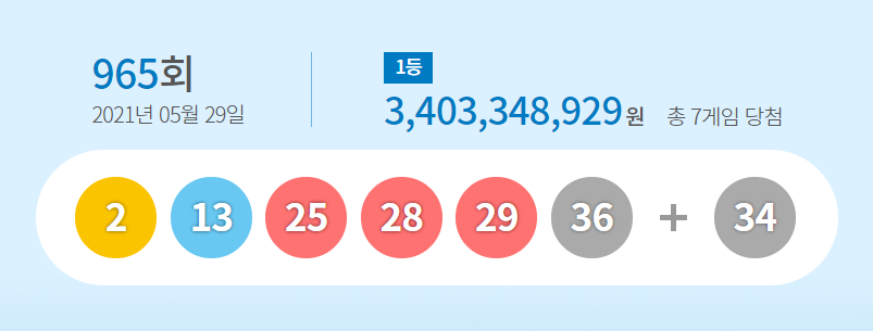 로또 965회 당첨번호 당첨지역 💡1등 34억