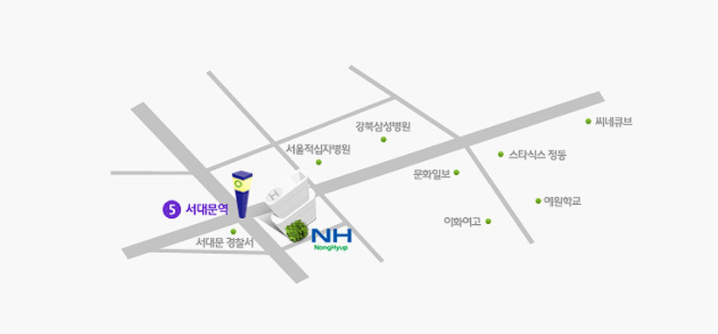 지하철 5호선 서대문역 5번 출구에서 광화문 사거리 방향 도보 2분