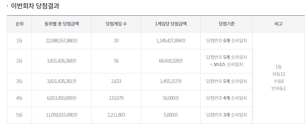 당첨번호 6개를 모두 맞힌 1등 당첨자는