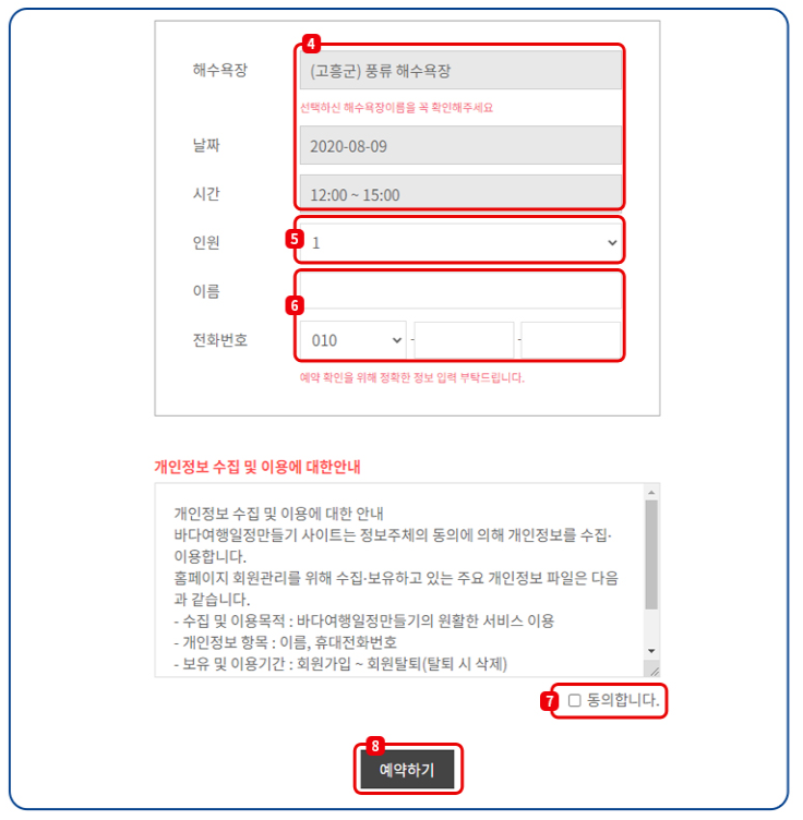 인원 및 개인 정보를 입력하면 간편하게 예약이 가능합니다.