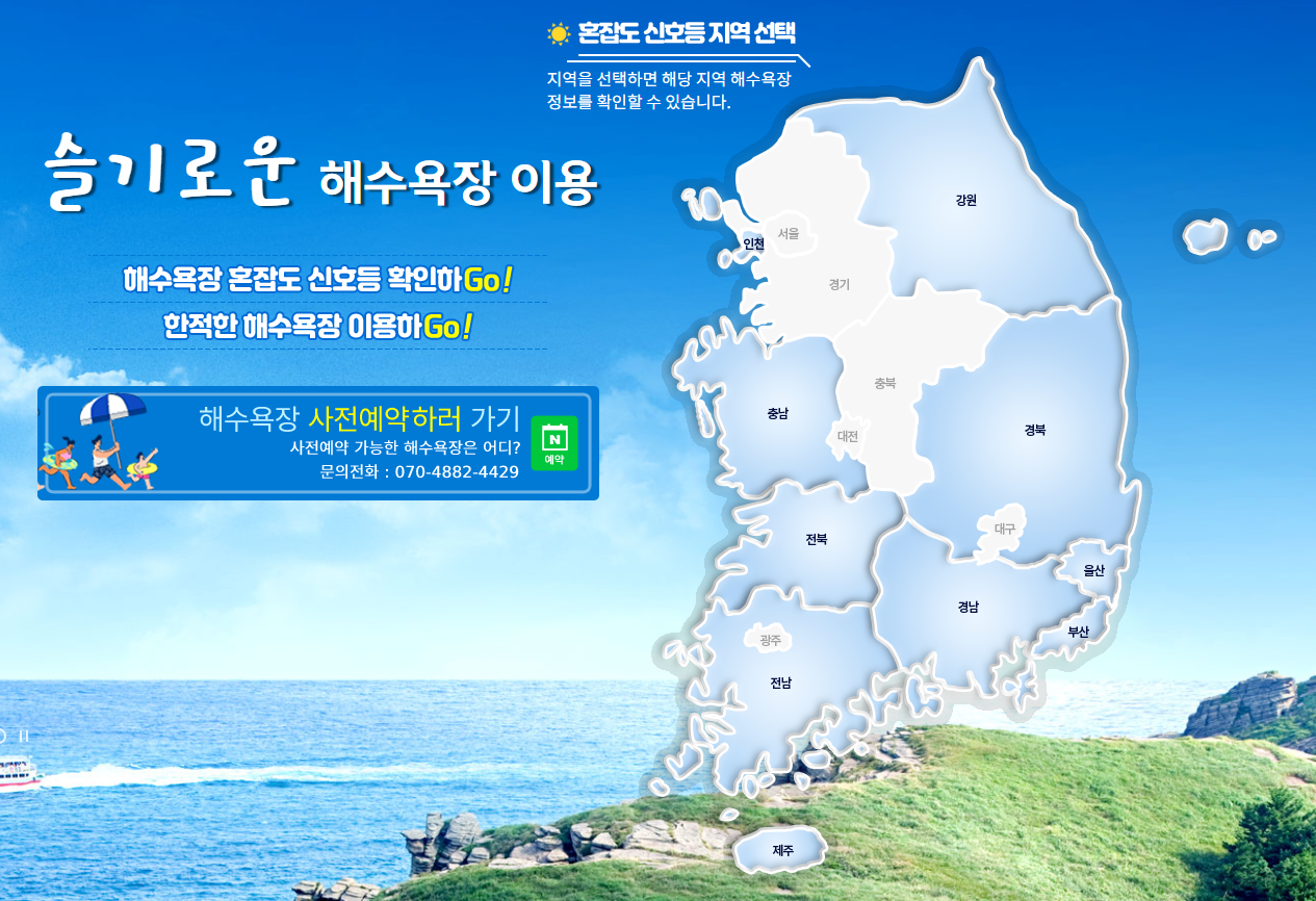 하기 사이트에서는 해수욕장 이용 사전 예약을 하실 수 있습니다. 해수욕장 혼잡도 및 신호등을 확인할 수 있으며, 한적한 해수욕장을 즐길 수 있기 때문에 많은 분들의 관심이 높아지고 있습니다.