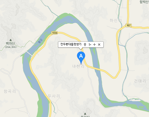 전두환대통령생가 생가,고택은 경남 합천군 율곡면 내천2길 14에 위치하고 있습니다.