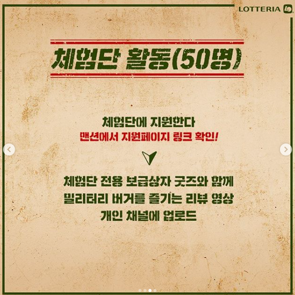“밀리터리 버거 민간인 50인 체험단” 모집한다