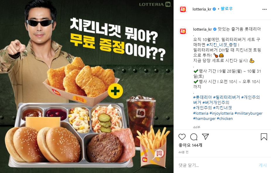 이밖에도 롯데리아에서는 밀리터리 버거 세트를