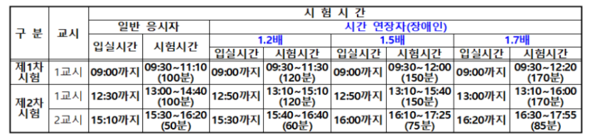 1차, 2차 모두 같은 날에 시험을 보며, 타 자격 시험과 달리 응시인원이 많아 채점 인원 부족 문제로 주관식 시험을 시행할 수 없어 모두 객관식으로 보기 때문입니다.