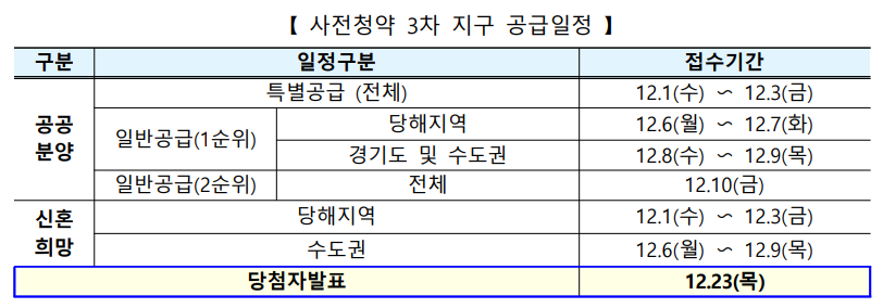 국토교통부(장관 노형욱)는 지난 7월부터 시행한 1차ㆍ2차 공공분양 사전청약에 이어 11월 18(목) 모집공고를 시작으로 4천1백 호 규모의 3차 사전청약을 시행한다고 밝혔습니다. 특히 3기 신도시 중 많은 관심을 받고 있는 하남 교산과 과천 주암이 포함된 만큼, 과천·하남에서 내 집 마련을 계획 중이었던 수요자들이 몰릴 것으로 보이고 있습니다. 자세한 사전청약 신청방법 및 조건을 살펴보도록 하겠습니다.