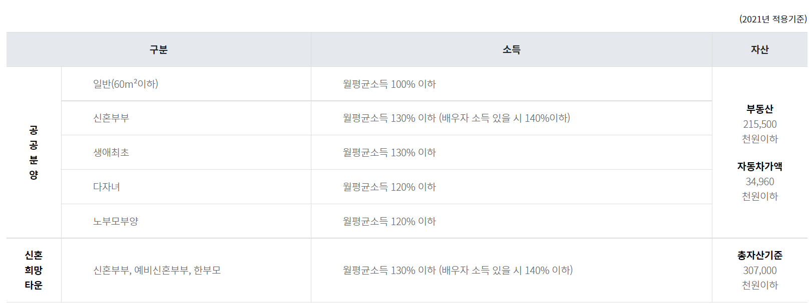 특별분양의 경우 공급유형에 따라 입주자저축ㆍ자산요건ㆍ소득 요건ㆍ무주택 세대주 등의 자격을 갖춰야 하며, 구체적인 자격은 공고문을 통해 확인할 수 있다.
