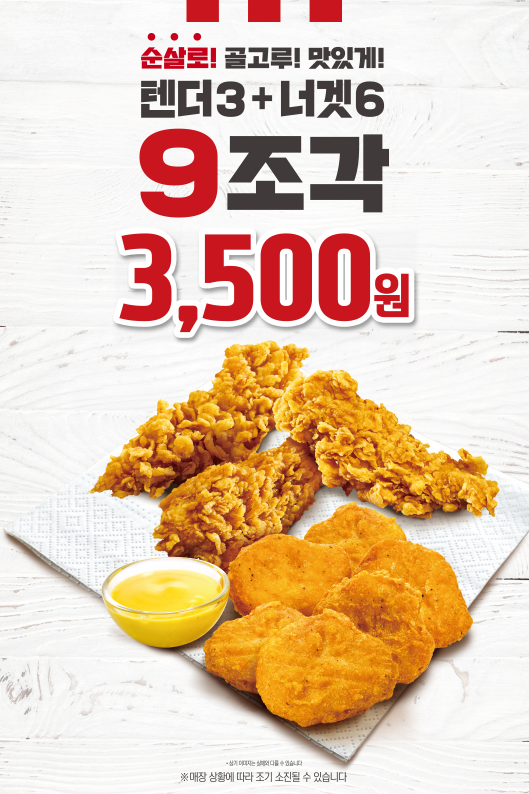 KFC 텐더 3개+너겟 6 (3,500원) 이벤트 진행