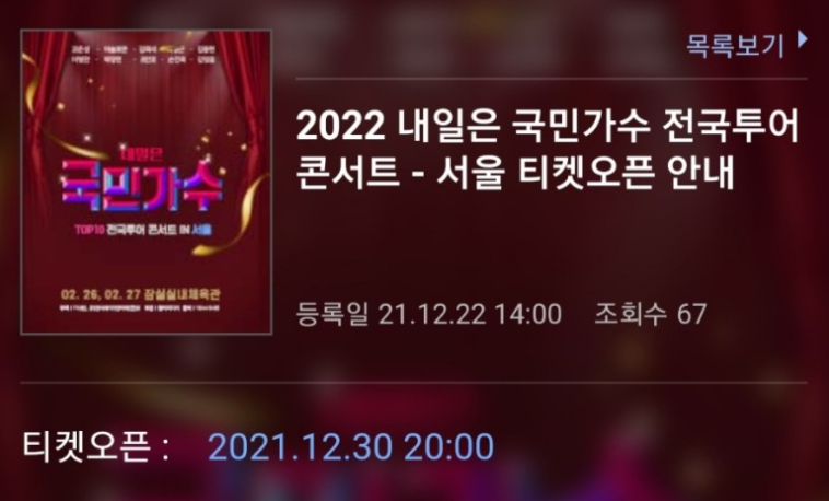 내일은 국민가수 콘서트 관련 정보를 전달드리도록 하겠습니다.