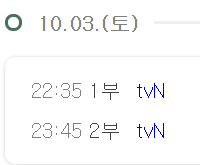 tvN은 10월 3일(토) 22:35(1부),23:45(2부)
