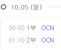 OCN 10월 5일(월) 00:00(1부) 01:10(2부)