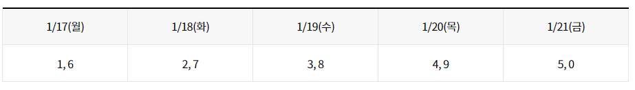 신청 접수 첫 주인 1월 17일부터 21일까지는 혼잡을 피하기 위해 온․오프라인 모두 출생년도 끝자리를 기준으로 5부제를 적용합니다.