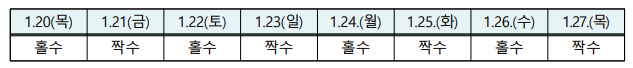 2022.01.20 (목) 07:00 ~ 2022.01.27 (목) 17:00 까지