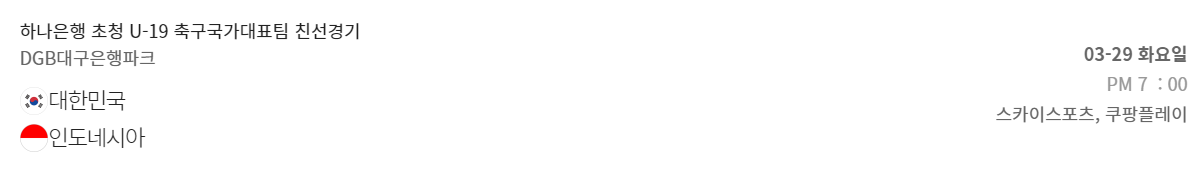 하나은행 초청 U19 축구 국가대표팀 친선경기는 쿠팡플레이와 스카이 스포츠를 통해 중계 됩니다.