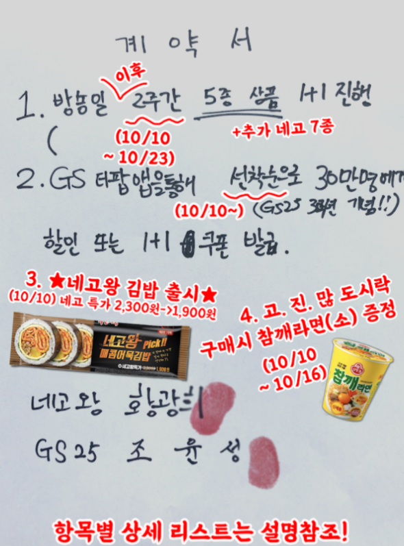 4. 고.진.많(고기 진짜 많구나) 도시락 구매시 참깨라면 소(컵) 증정(10/10 0시~10/16 24시)