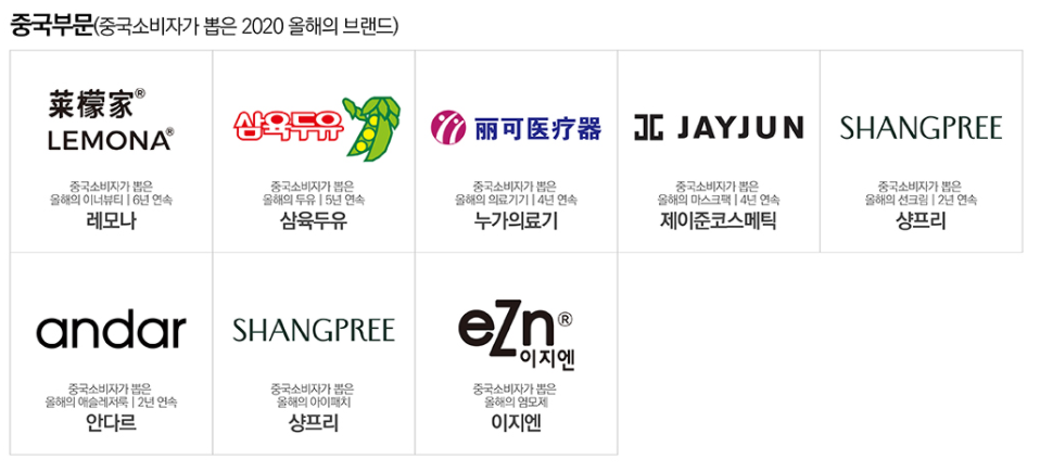 이외 2020 올해의 브랜드 등입니다.