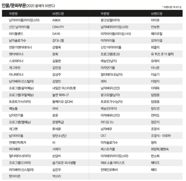 2020 올해의 브랜드 대상(인물/문화부문)