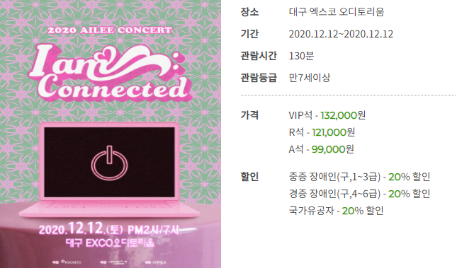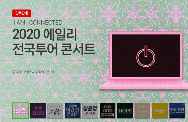 코로나로 지쳐있는 팬들에게 시원스러운 가창력과 중독성 있는 멜로디의 에일리의 감성 공연은 매우 기대를 모으고 있습니다. 섬세한 표현력과 개개인의 감성까지 저격할 'I AM: CONNECTED' 거리두기 콘서트는 관객과 음악을 하나로 연결해 줄 겁니다.