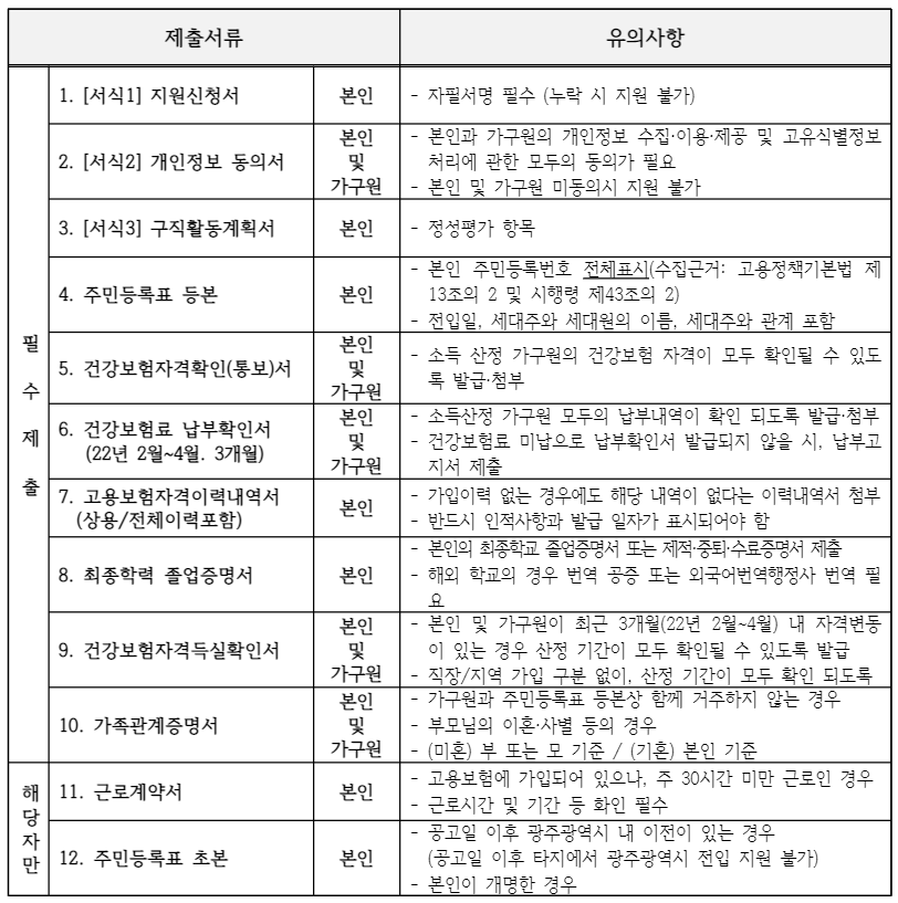 - 광주광역시 거주하는 만19세~34세의 구직활동의지가 있는 미취업 청년