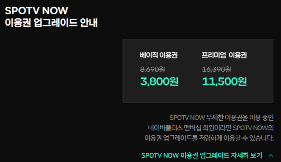 스포티비를 가장 저렴하게 이용 하는 방법은 스포티비 나우 (SPOTV NOW)를 선택하며, 7900원, 14900원의 요금제가 아닌 네이버 플러스 멤버십을 활용하는 것입니다. 네이버 플러스 멤버십을 이용하면 가장 저렴한 4900원에 시청이 가능합니다. 또한 네이버페이 포인트 최대 5% 적립, 그 외 다양한 디지털 콘텐츠 이용권 등 그 외 다양한 혜택을 누릴 수 있습니다.