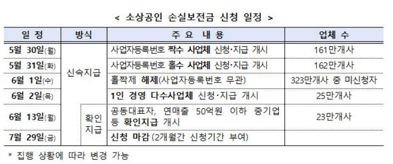1. 손실보전금은 기존 전달체계를 최대한 활용하여 추경 통과 시점(5.29일)바로 다음 날인 5.30일부터 지급 개시 예정