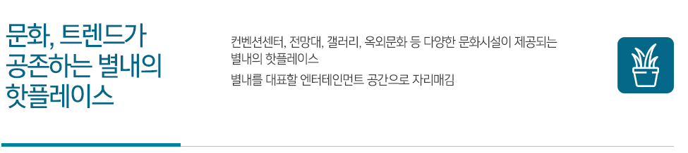컨벤션센터, 전망대, 갤러리, 옥외문화 등 다양한 문화시설이 제공되는 별내의 핫플레이스로 탄생하여 별내 신도시 내 상업, 문화, 주거시설을 갖춘 초대형 자이(Xi) 복합 단지로 변신할 예정입니다.