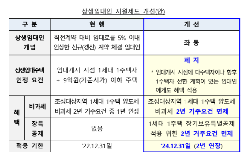 우선 정부는 임대료를 5% 이내에서 인상하는 이른바 '상생 임대인'을 대상으로 세금 관련 거주 요건을 완화합니다. 1세대 1주택자의 양도세 비과세 또는 장기보유특별공제를 위해서는 2년 거주해야 하는데 상생 임대인을 대상으로는 이를 면제할 방침입니다.