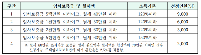 임차보증금·월세 및 소득기준, 4개 구간으로 나누어 선정하고인원 초과 시 구간별 전산 추첨